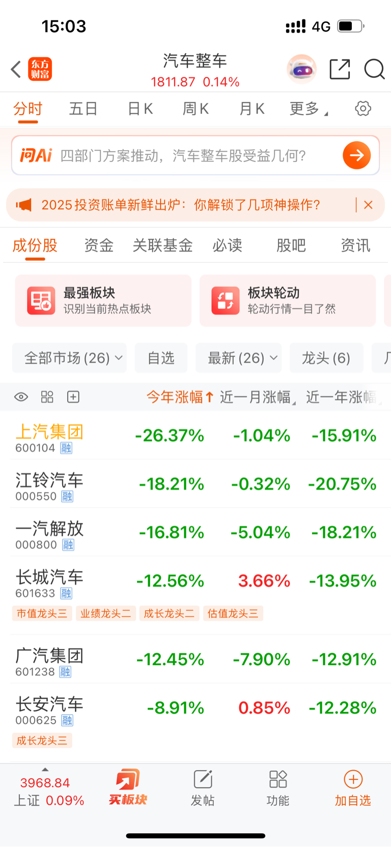 恭喜上汽2025在牛市4000点还跌26%,幸好我只买了一点,恶庄也在套着吧