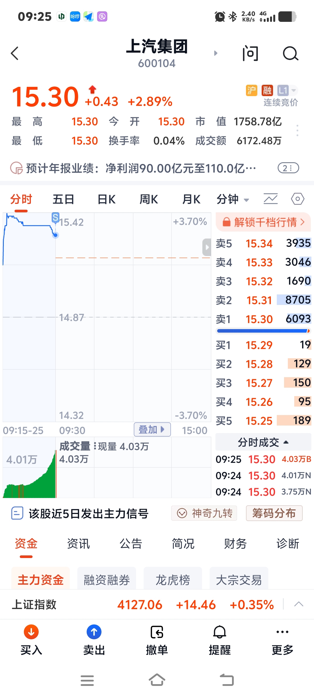 $上汽集团(SH600104)$ 昨天加仓的已经卖了,管他了,这股格局的话,十格9.9输