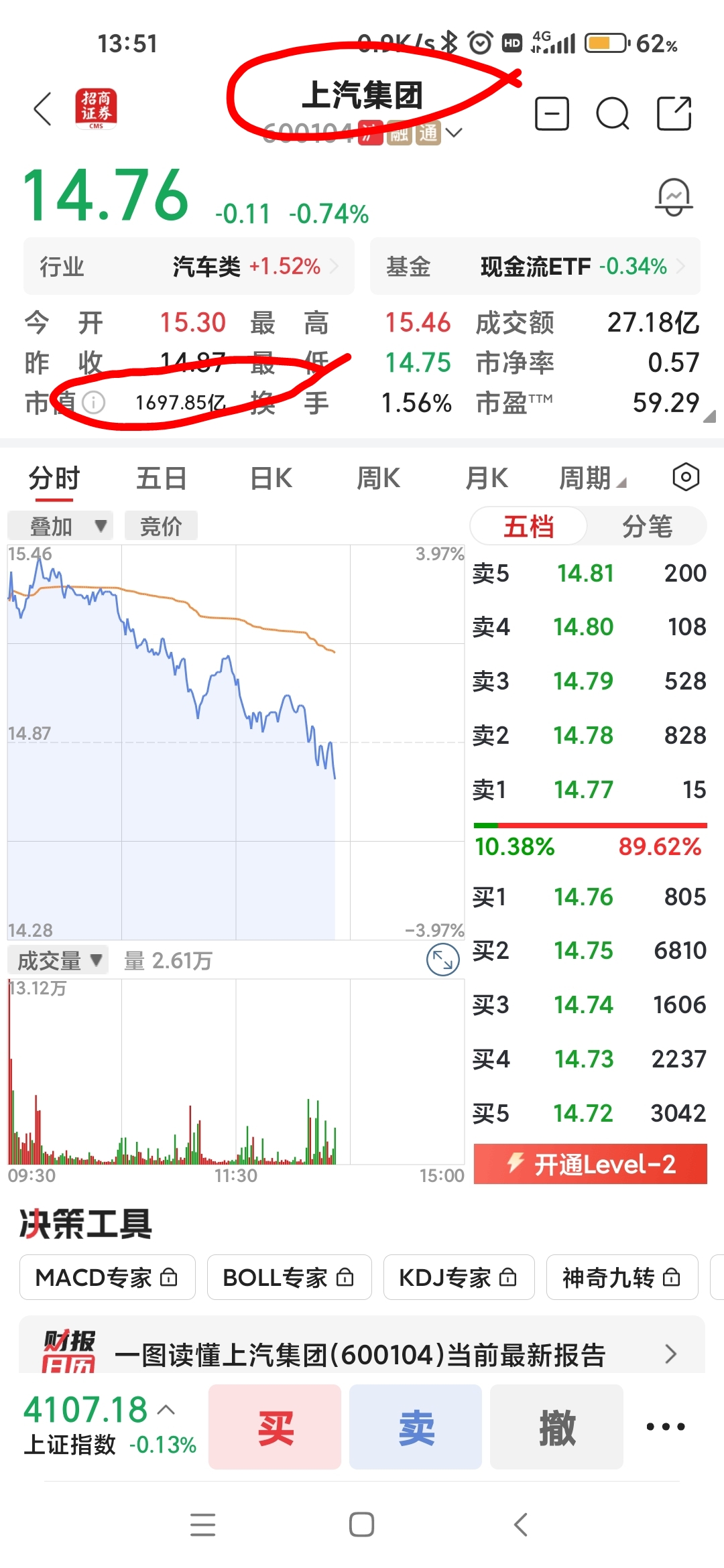 $上汽集团(SH600104)$ 上汽已跌破1700亿市值!最终奔向1500亿!未来三年内,跌破1500亿的机会是非常大的!不会做丅的最好远离上汽!