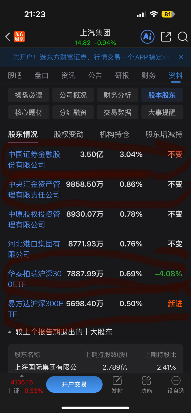 $上汽集团(SH600104)$ 画圈的就是砸盘的元凶,你们看他们有多少筹码要多少有多少特别是正金和汇金在这里面呆了n年了,难不成这一次全跑了,那么又是哪些机构接的盘?