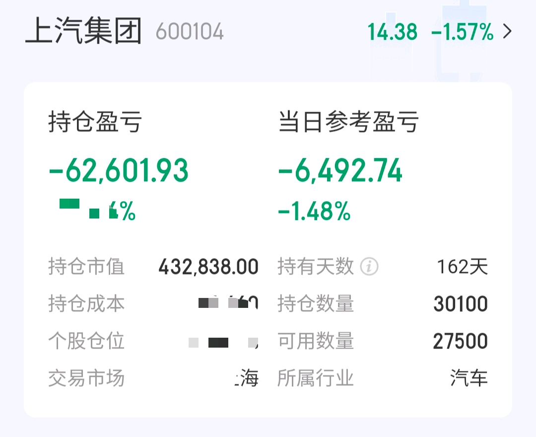 $上汽集团(SH600104)$ 上汽一战,兵败162天