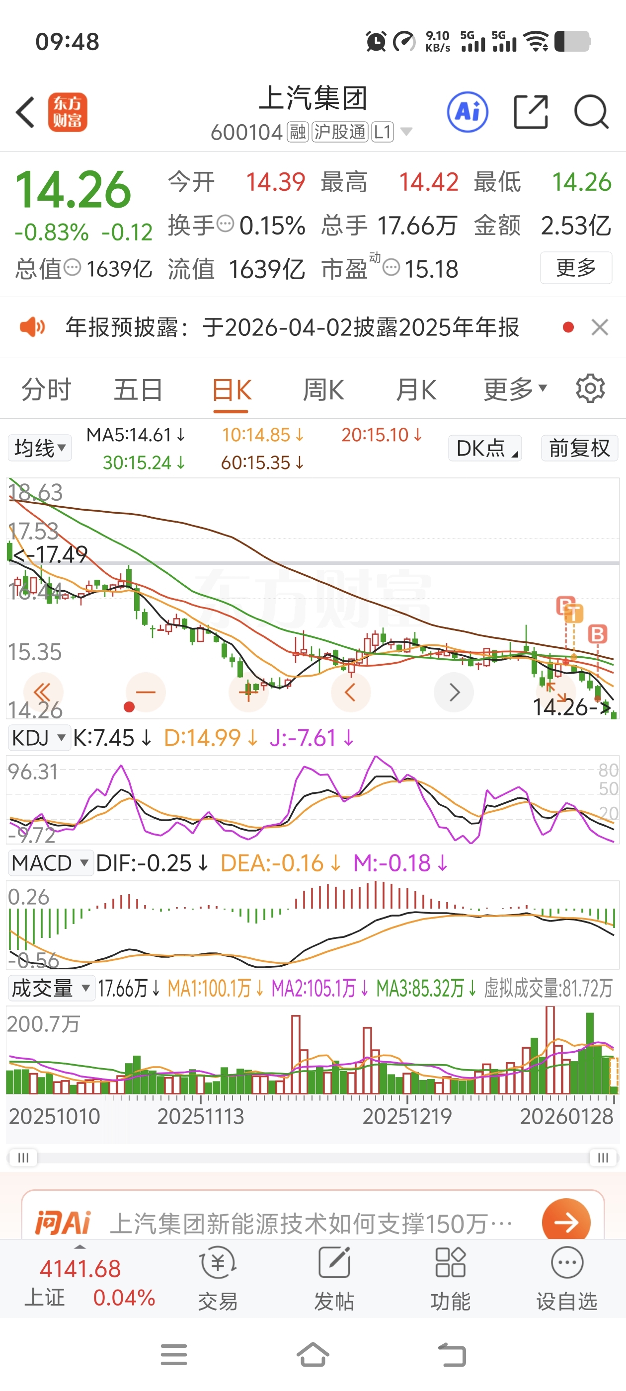 $上汽集团(SH600104)$ 有没有比我惨的?
