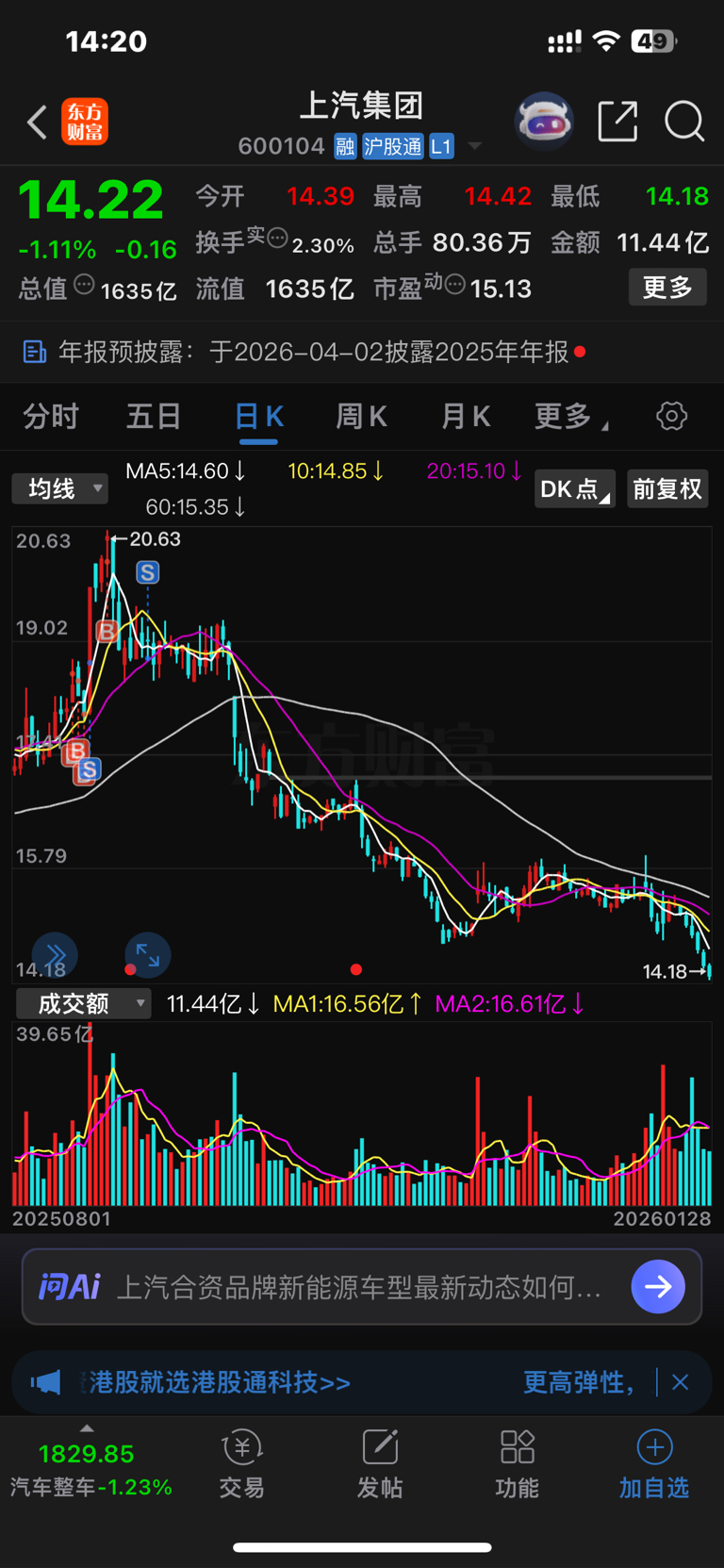 $上汽集团(SH600104)$ 果断离场