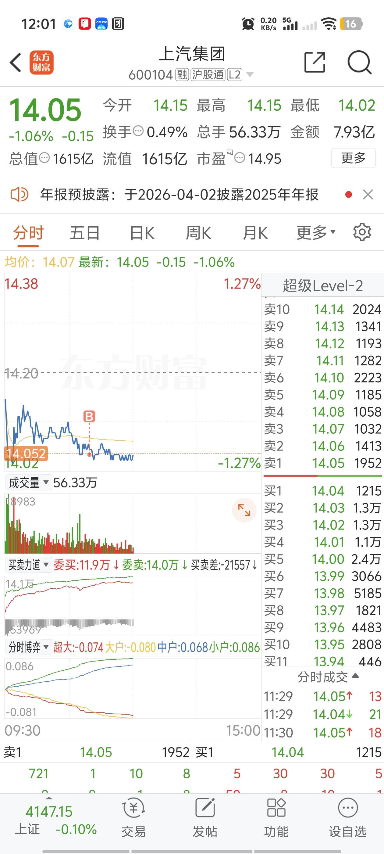 $上汽集团(SH600104)$ 年赚100亿的昔日龙头,不信你一直跌,快过年了,该涨涨了,给股友们办点年货,主力大哥当个事办