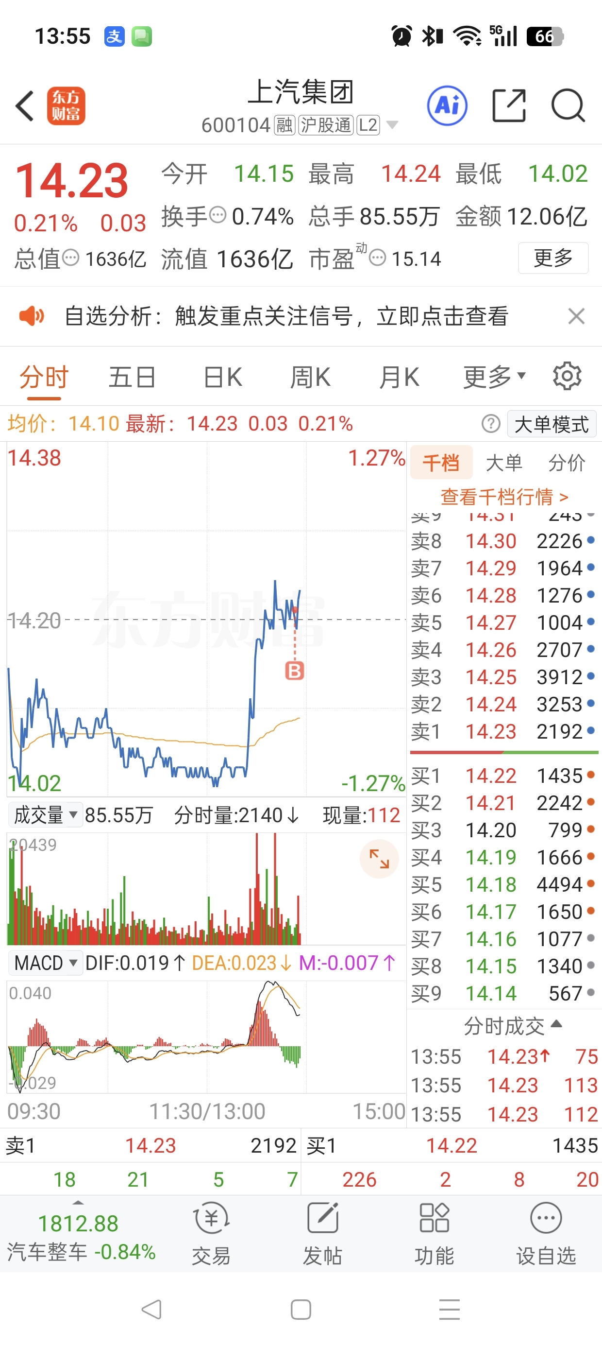 $上汽集团(SH600104)$ 兄弟们我上车了