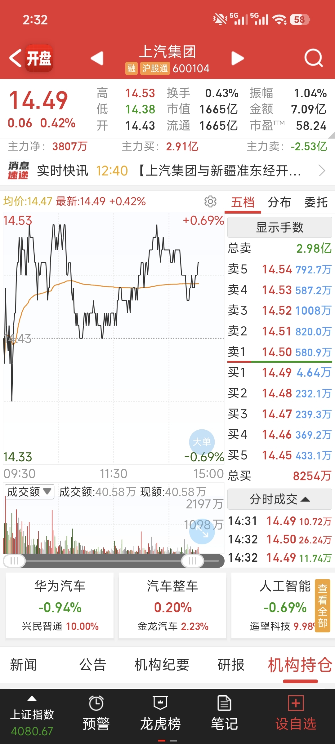 $上汽集团(SH600104)$ 压盘有点严重呀,卖一到卖五也不是很想卖,从早盘压到现在。啥意思呀,看不懂啊