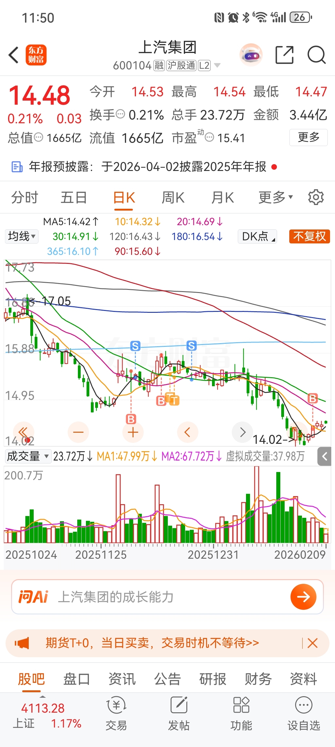 $上汽集团(SH600104)$ 敢大跌就斩仓