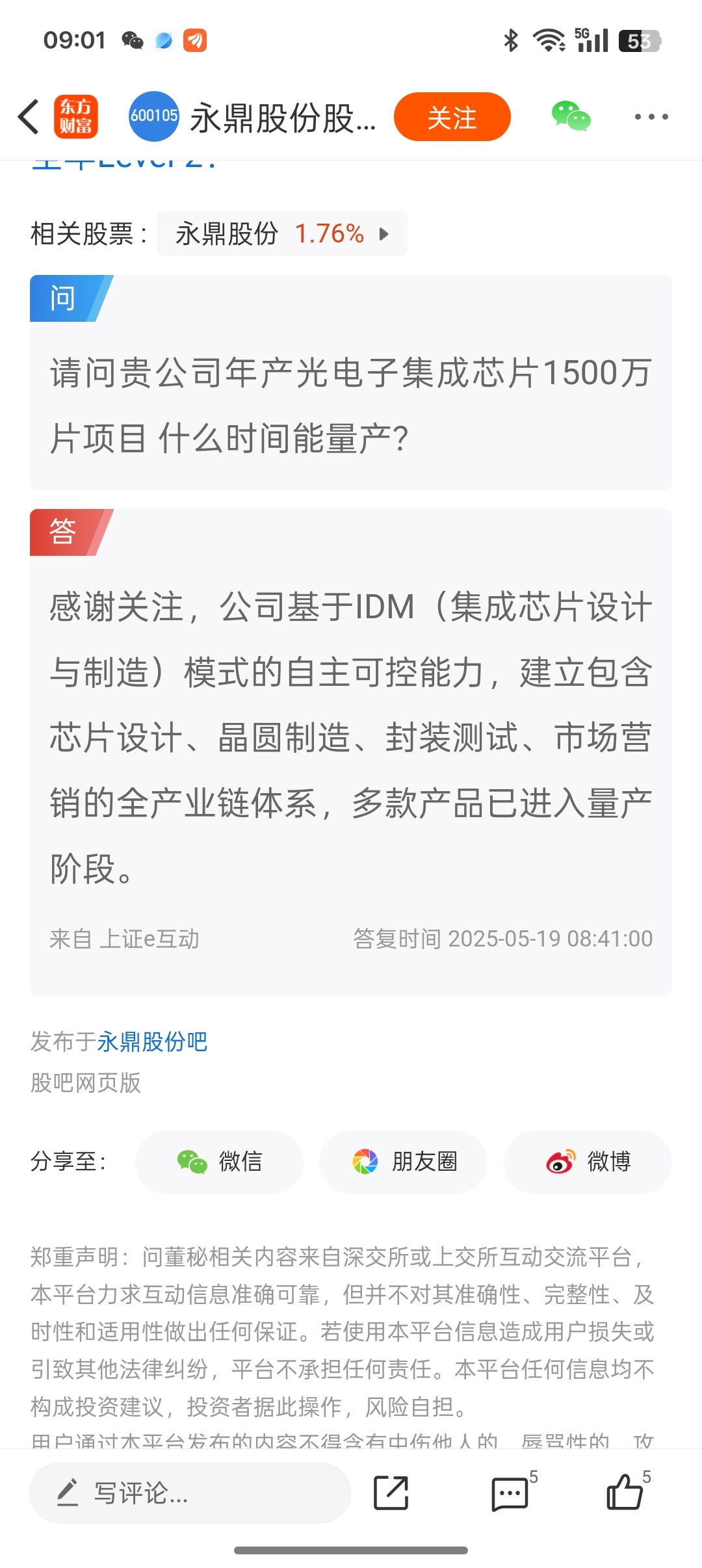 温馨提示: 1.根据《证券法》规定,禁止编造、传播虚假信息或者误导性信息,扰乱证券市场;2.用户在本社区发表的所有资料、言论等仅代表个人观点,与本网站立场无关,不对您构成任何投资建议。用户应基于自己的独立判断,自行决定证券投资并承担相应风险。《东方财富社区管理规定》