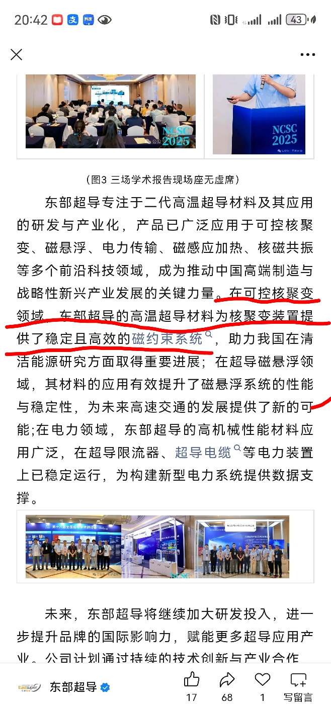 $永鼎股份(SH600105)$ 公司自己的公众号实锤为可控核聚变提供