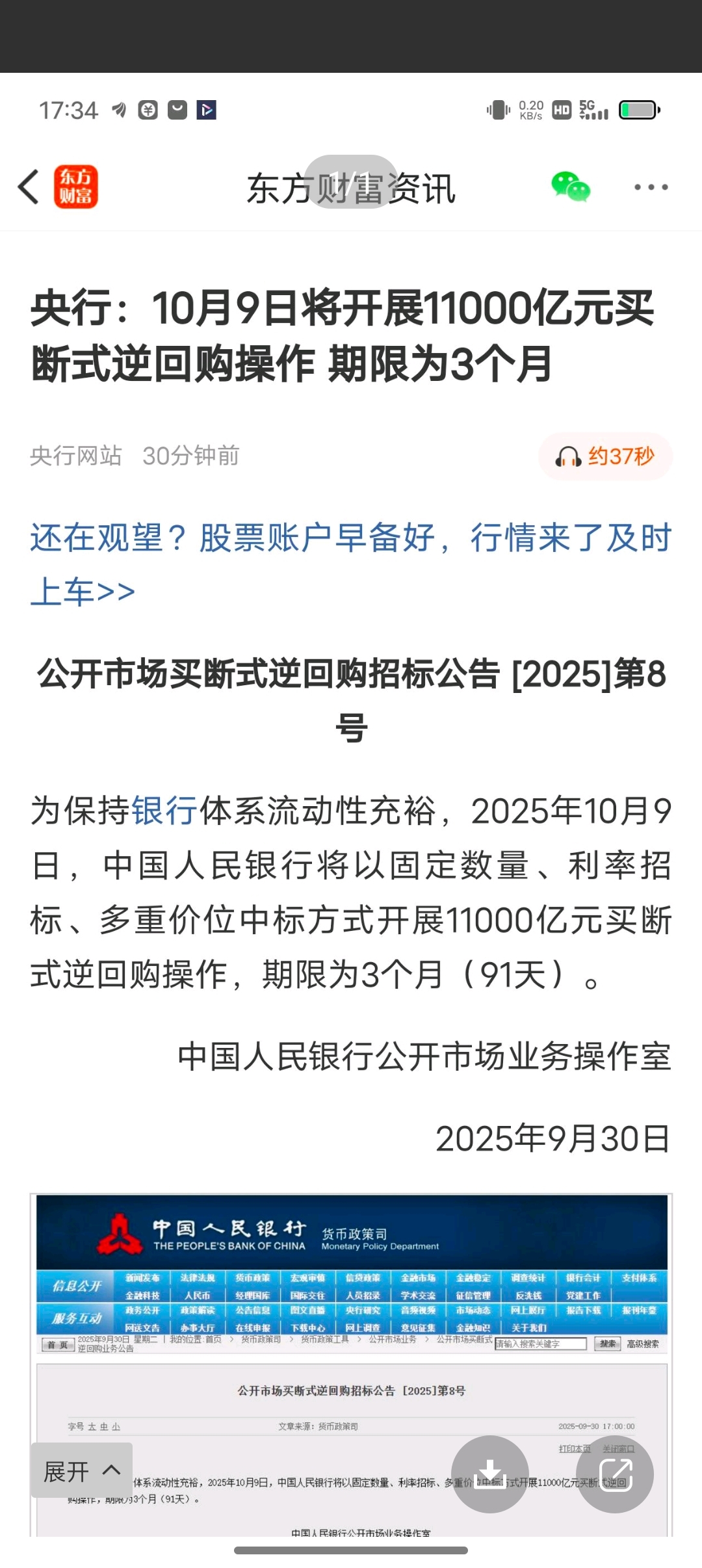 国庆假期信息:一央行10月9日将开展11000亿元买断式逆回购操作,关键词历史首