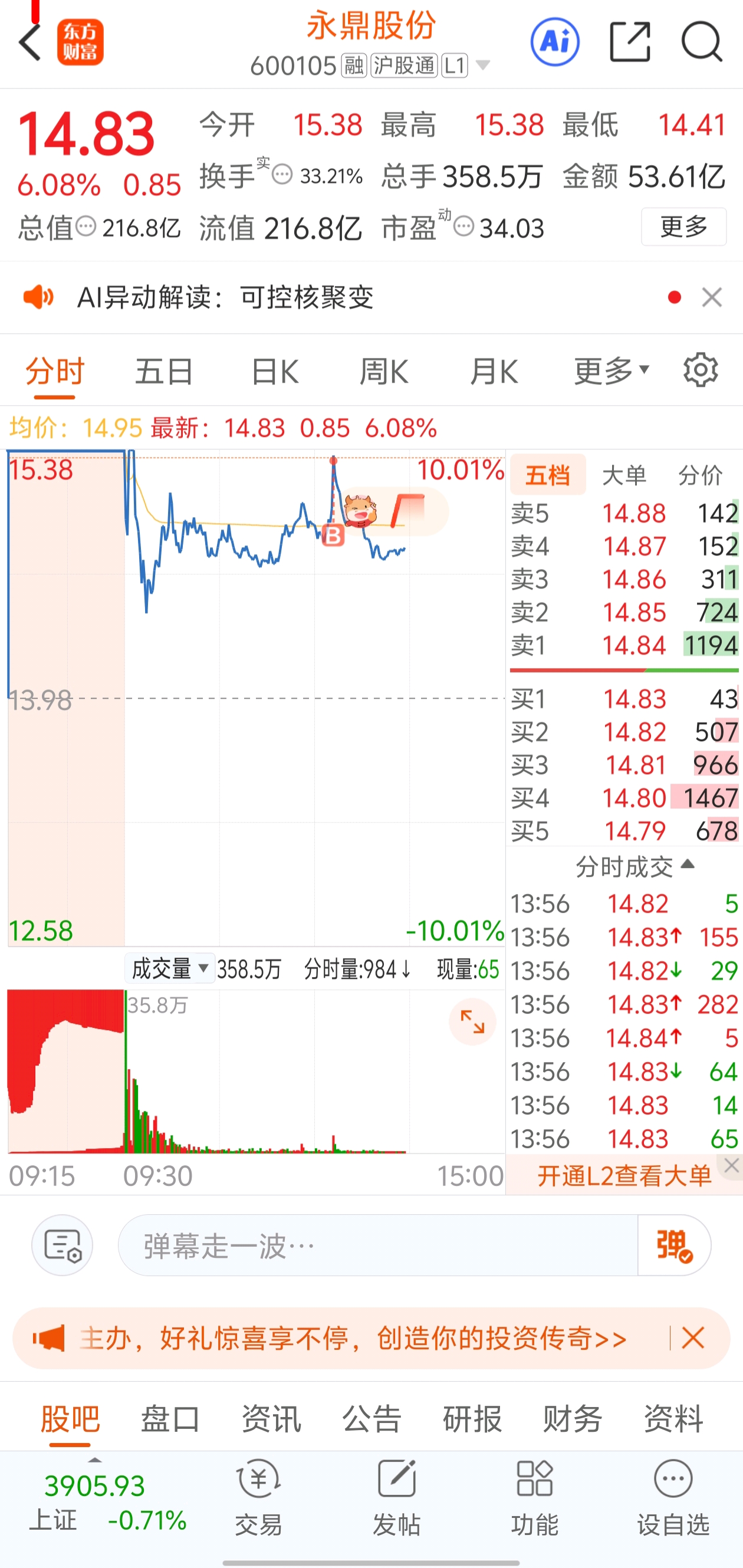 $永鼎股份(SH600105)$ 忘八毒紫的给老子挂山顶了