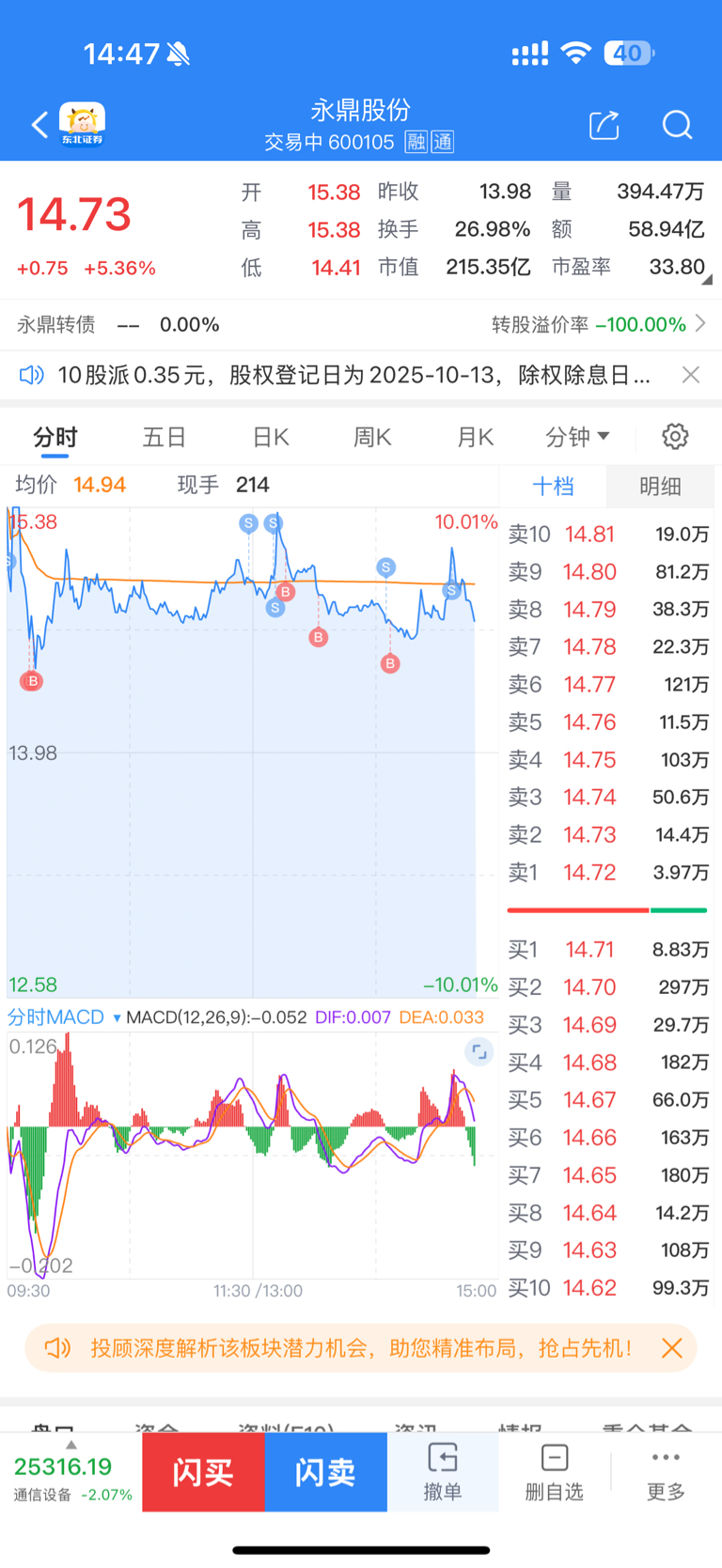 $永鼎股份(SH600105)$ 最后一次的量化拉升单可不是我砸的