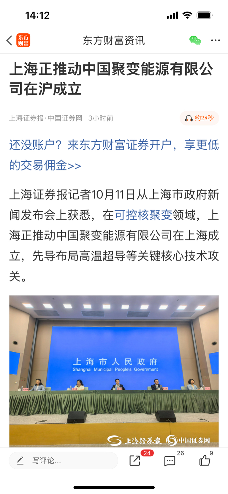 $永鼎股份(SH600105)$ 上海老大哥永远是快人一步!成立核聚变能源公司,攻关高温超导等关键技术,这和永鼎股份的技术方向高度契合!另外合锻智能也出来辟谣了,未取得核聚变相关业务收入!还有昨天美国大盘和科技公司大跌特跌旳情况下,核聚变公司Oklo逆市大涨6.5%(盘中最高涨幅16%多),说明核聚变公司是当下全球目光所在,永鼎做为最正宗的概念股,下周可期!