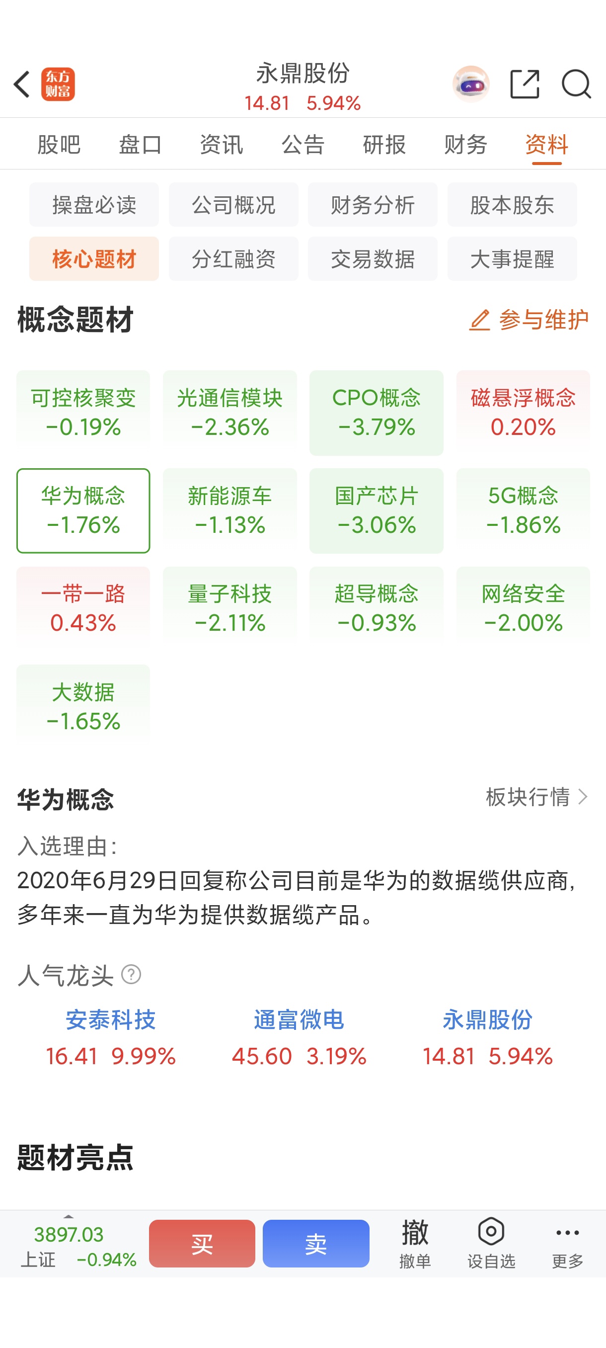 贸易战利好稀土。利好核聚变,利好国产芯片和华为概念等等,永鼎股份都有,明天一字板涨停