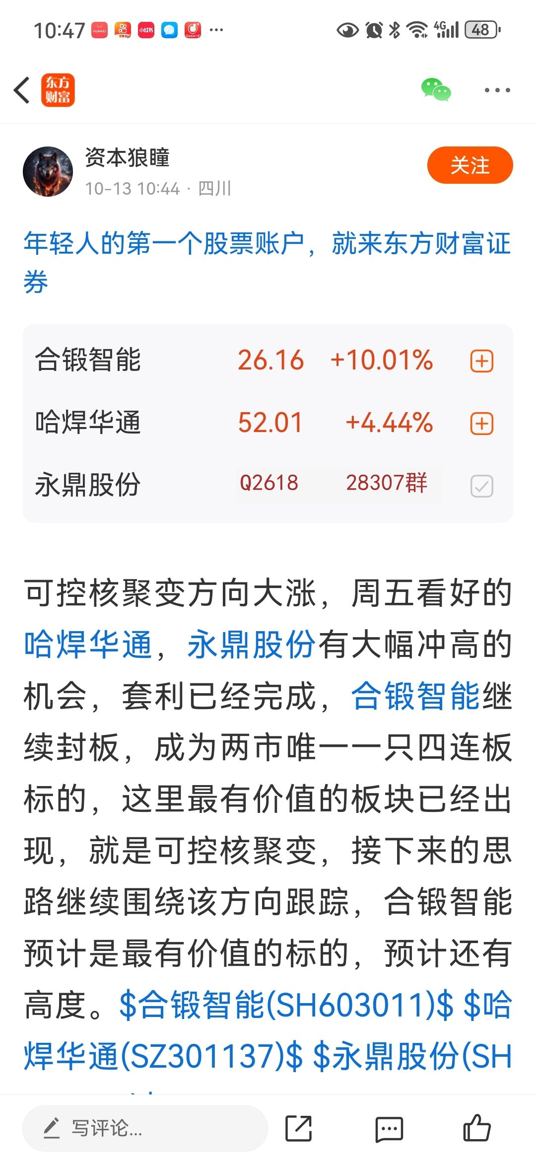 温馨提示: 1.根据《证券法》规定,禁止编造、传播虚假信息或者误导性信息,扰乱证券市场;2.用户在本社区发表的所有资料、言论等仅代表个人观点,与本网站立场无关,不对您构成任何投资建议。用户应基于自己的独立判断,自行决定证券投资并承担相应风险。《东方财富社区管理规定》