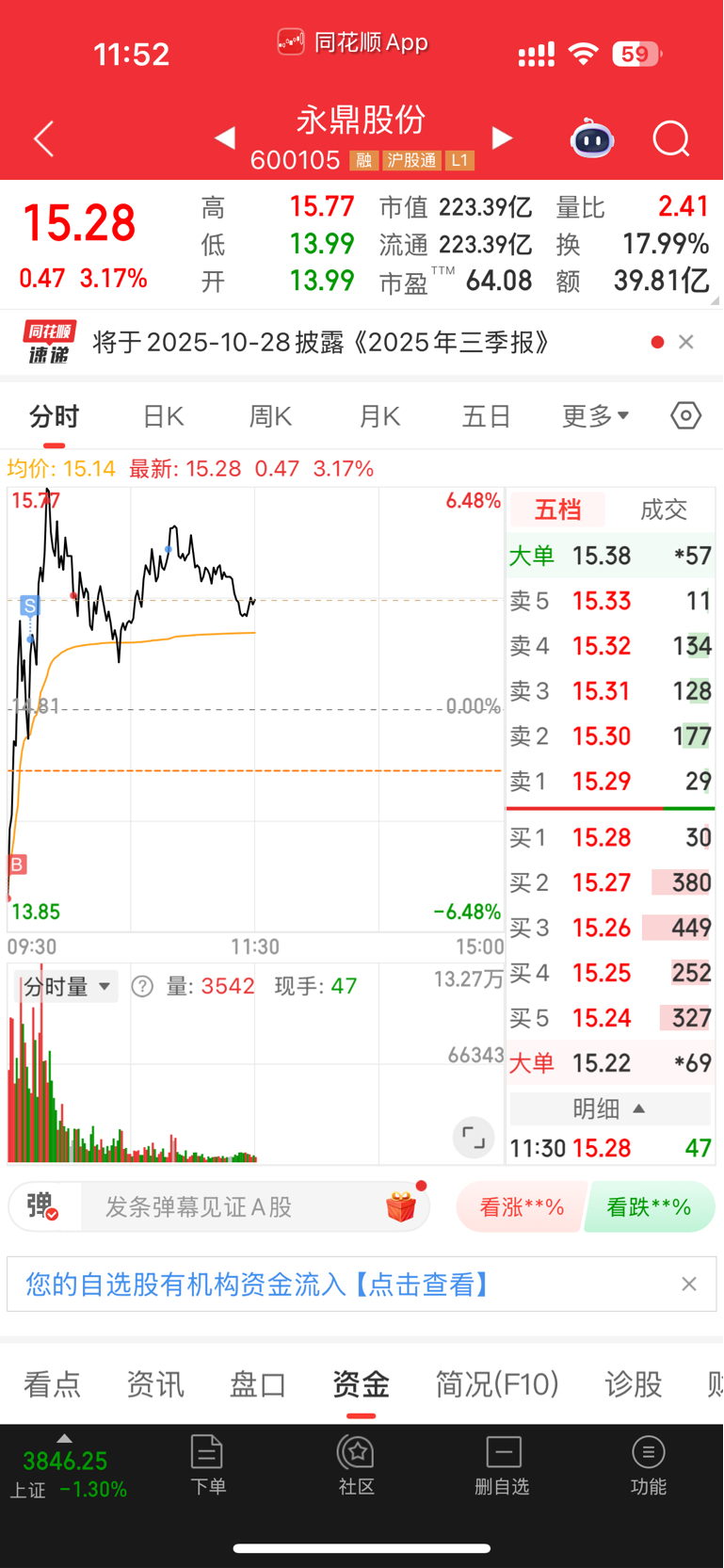 $永鼎股份(SH600105)$ 今天还不错