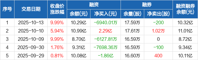 永鼎股份:融资净偿还6940.01万元,融资余额10.29亿元(10-13)