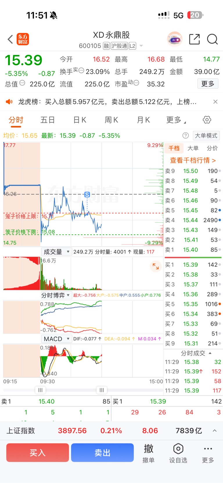 $XD永鼎股(SH600105)$ 情绪分歧严重,尾盘可能搏低天反核,亏钱效应明显先撤了