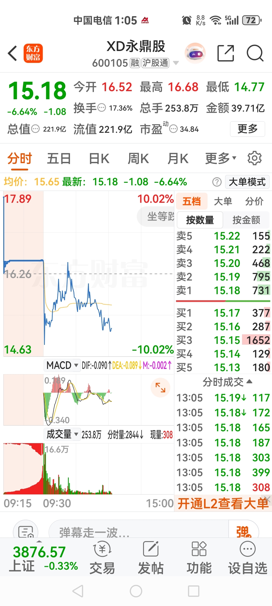 $XD永鼎股(SH600105)$ :上午开盘14.86已买入建仓。计划有回15以下加仓干!!