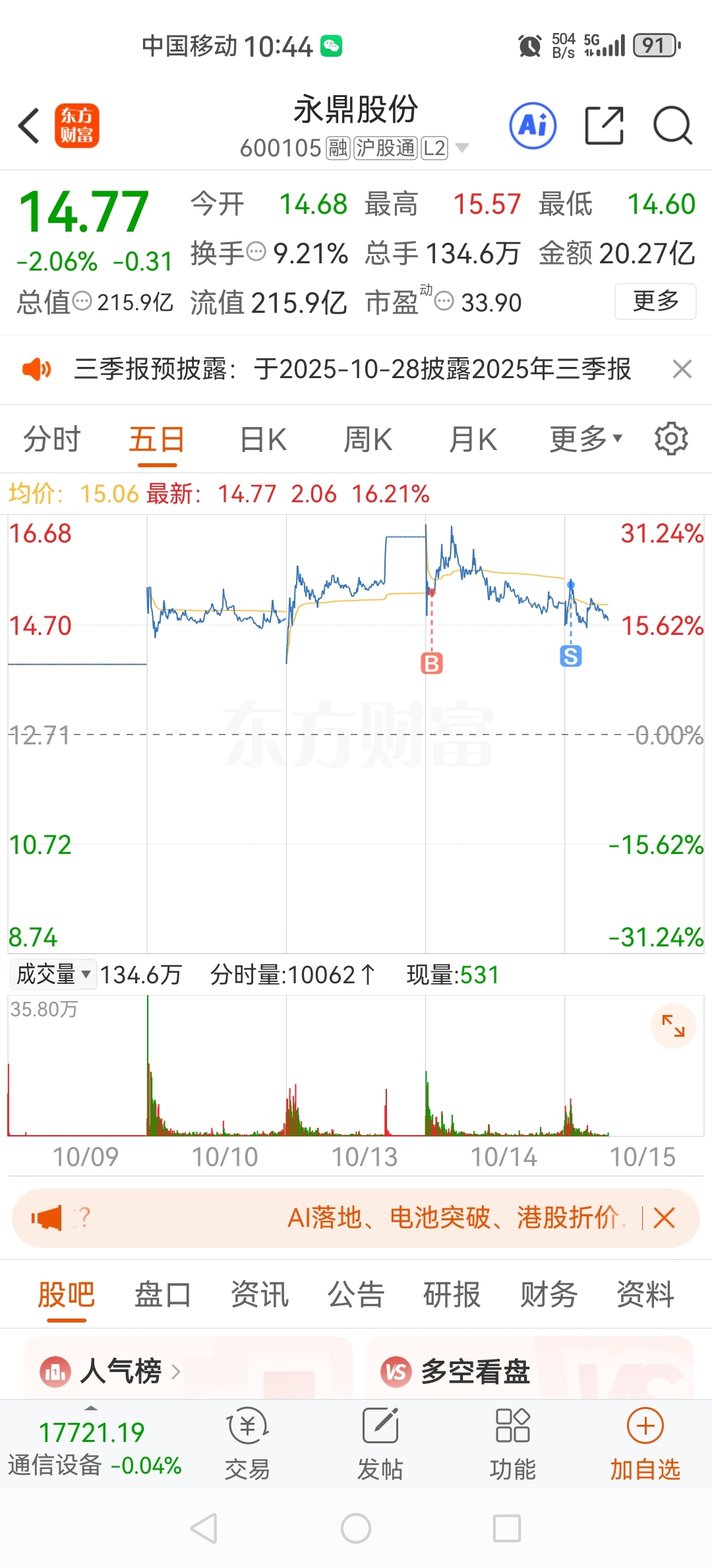 $永鼎股份(SH600105)$ 还好赚了一点跑了。