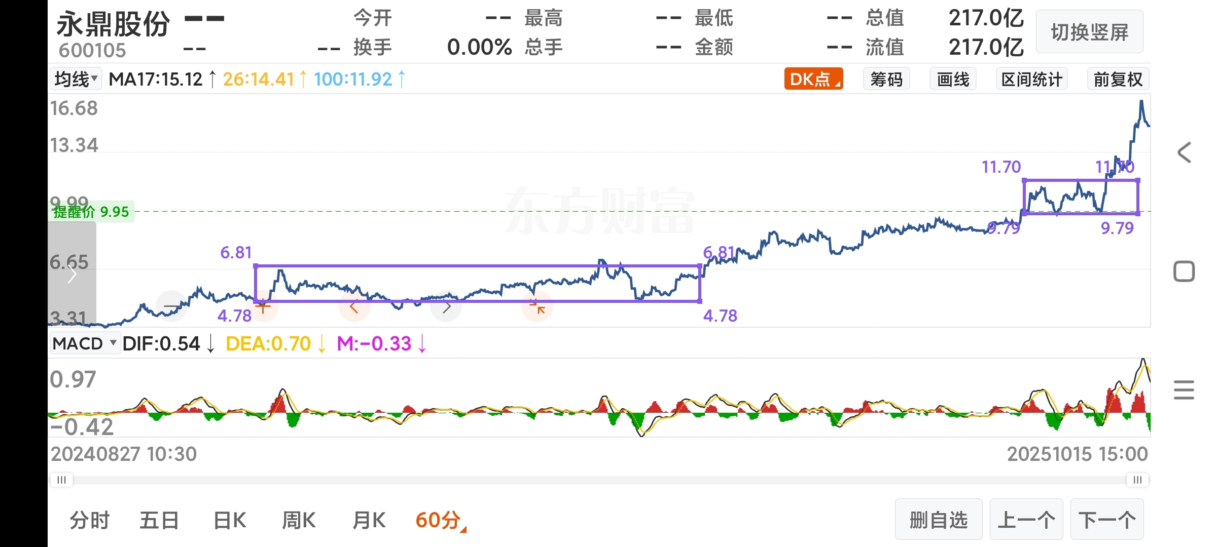 $永鼎股份(SH600105)$ 是回踩11.95再次强攻还是拉回9.9这可是第二个中枢了有背驰迹象了!