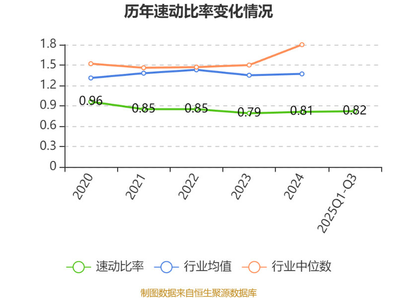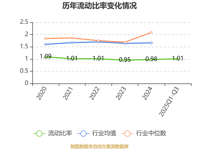 2025年前三季度,公司流动比率为1.01,速动比率为0.82。