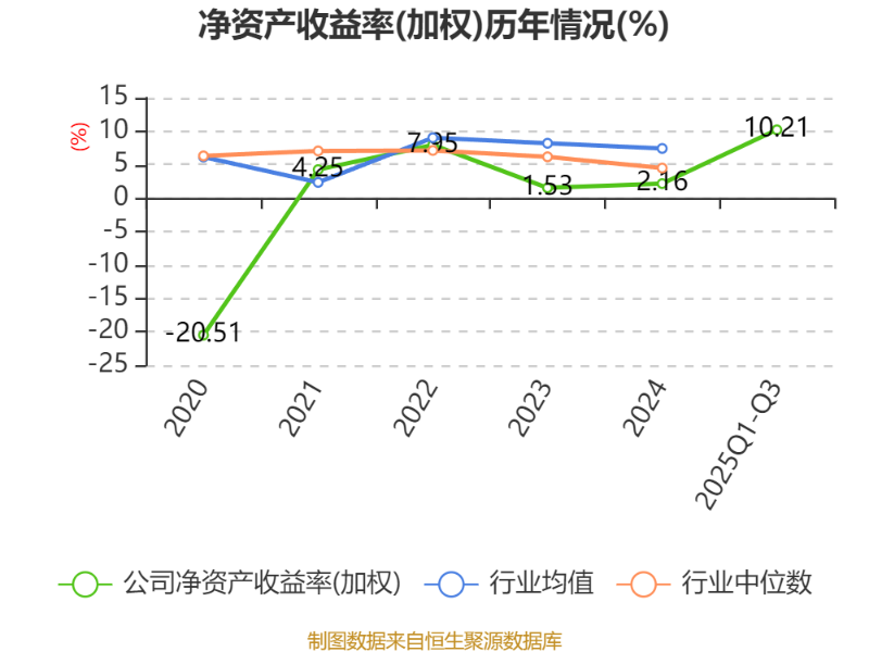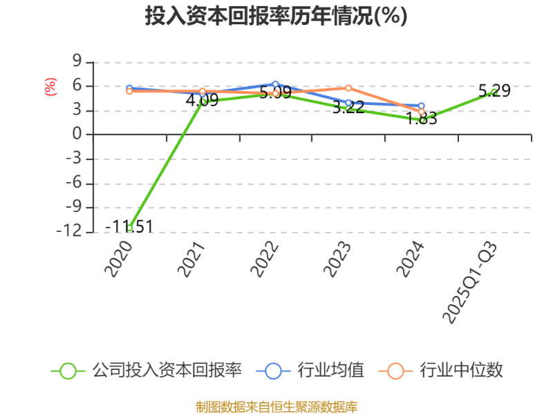盈利能力方面, 2025年前三季度公司加权平均净资产收益率为10.21%,同比上升8.23个百分点。公司2025年前三季度投入资本回报率为5.29%,较上年同期上升3.02个百分点。