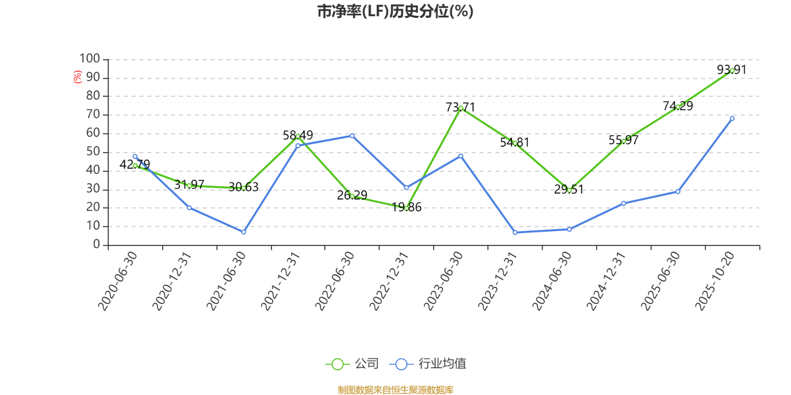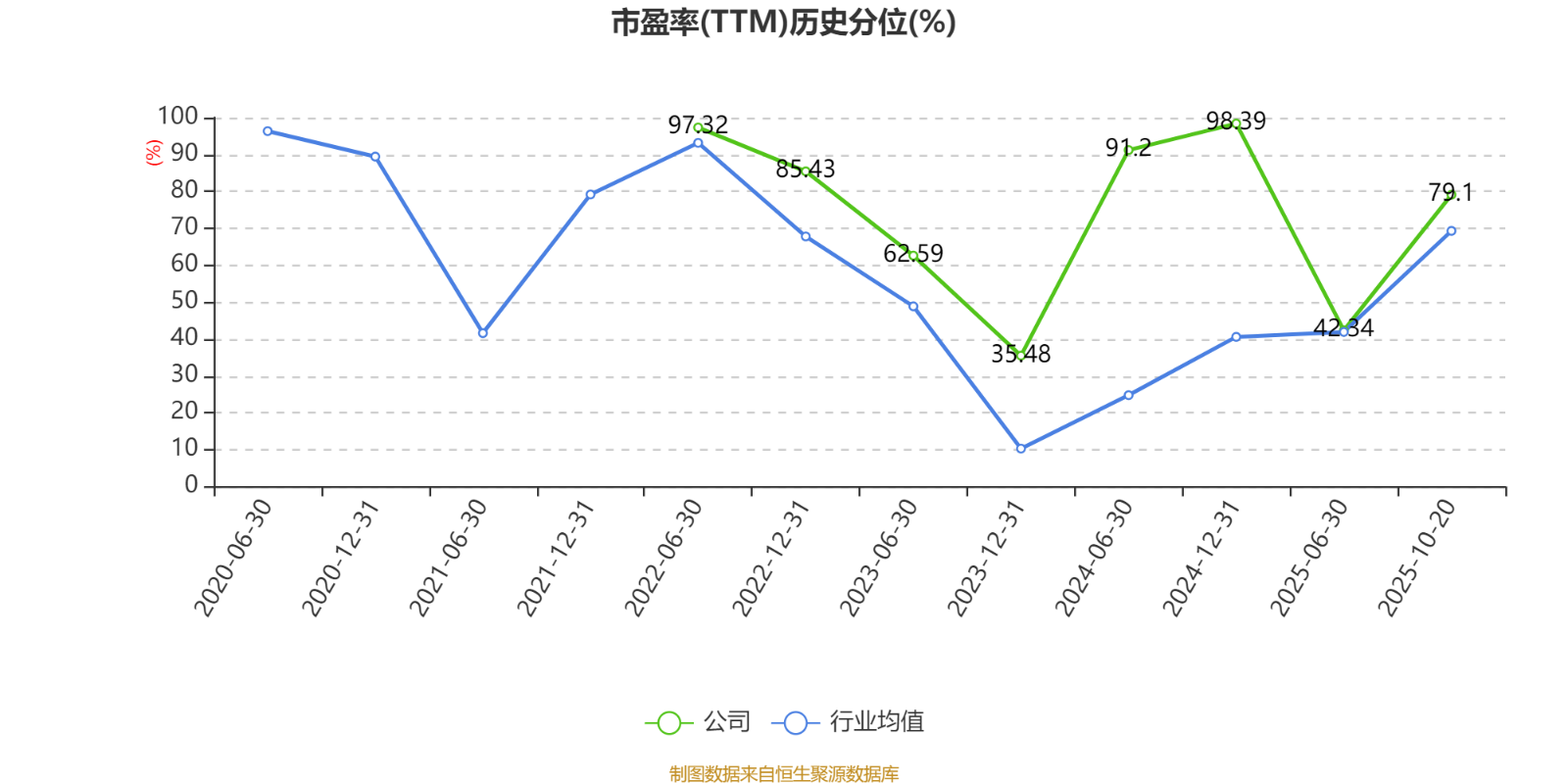市盈率、市净率为负时,不显示当期分位数,会导致折线图中断。