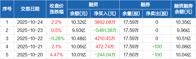 永鼎股份:融资净买入3892.08万元,融资余额10.32亿元(10-24)