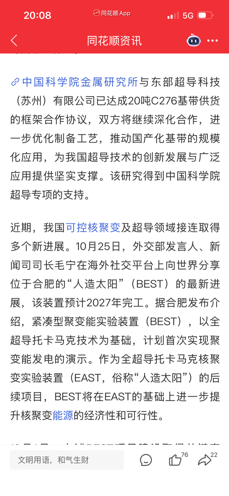 $永鼎股份(SH600105)$ 本来今天的可控核聚变主角是东部超导科技有限公司,怎么跑第二排去了