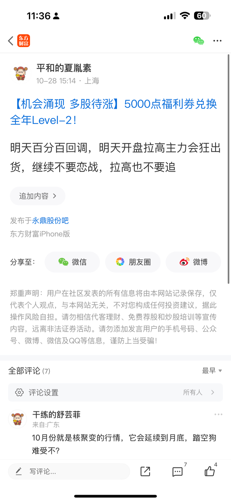 温馨提示: 1.根据《证券法》规定,禁止编造、传播虚假信息或者误导性信息,扰乱证券市场;2.用户在本社区发表的所有资料、言论等仅代表个人观点,与本网站立场无关,不对您构成任何投资建议。用户应基于自己的独立判断,自行决定证券投资并承担相应风险。《东方财富社区管理规定》