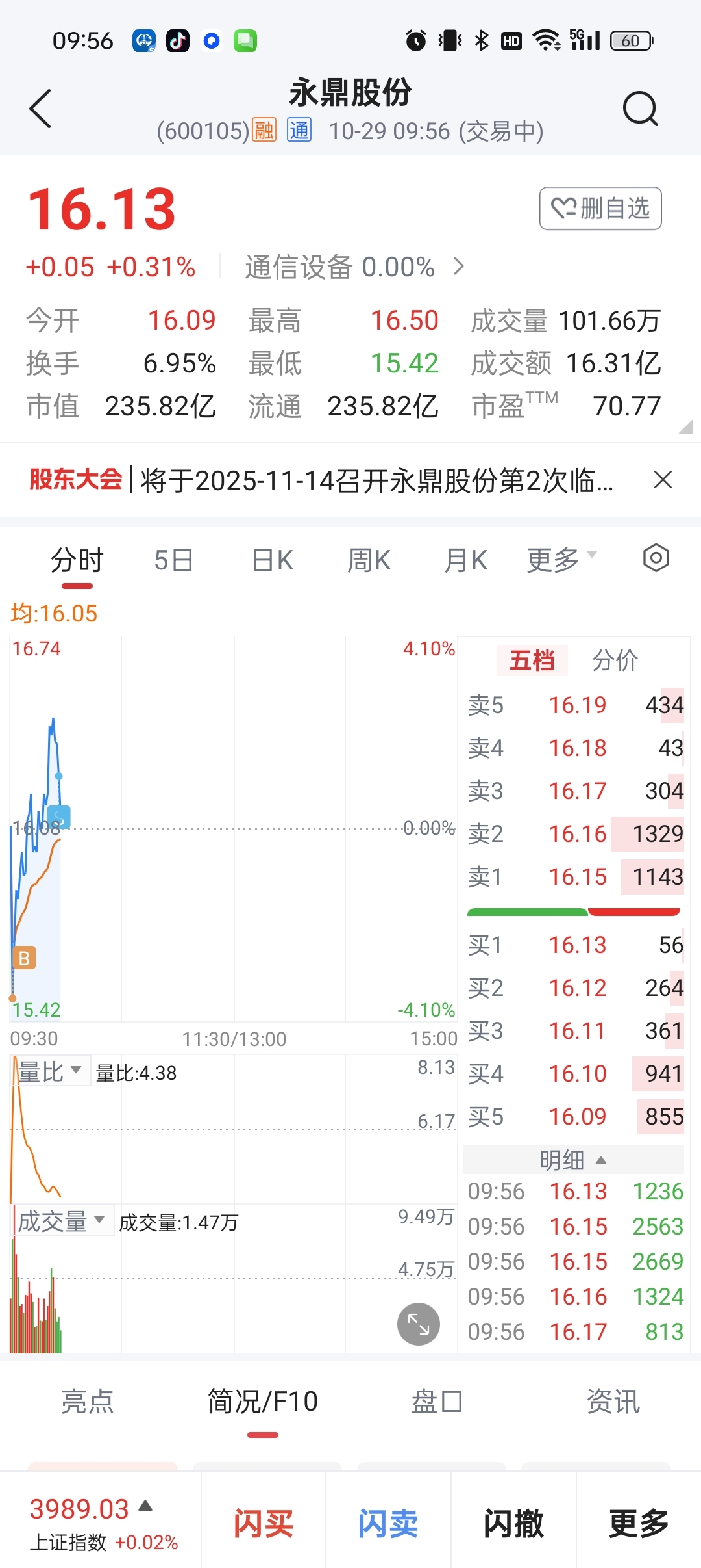 $永鼎股份(SH600105)$ 主力,你明天继续跌呗,每次跌都可以赚差价,一次3600元,也不错的