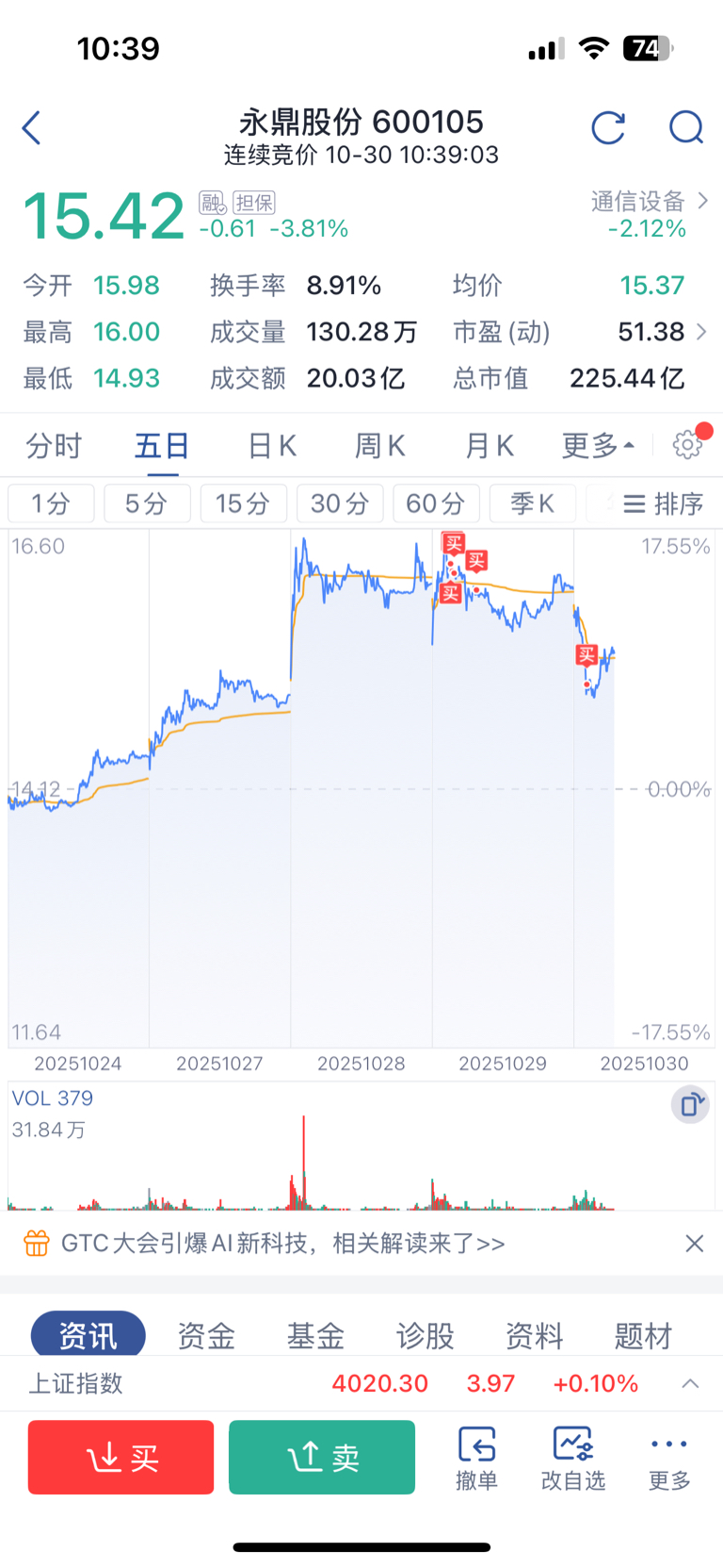 $永鼎股份(SH600105)$ 满仓了,信则有不信则无