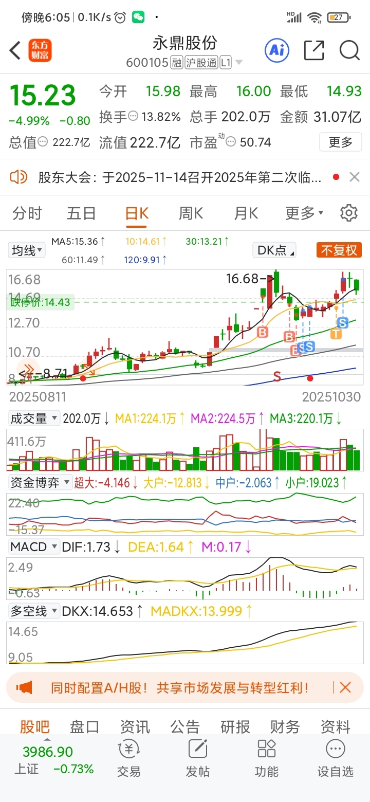 $永鼎股份(SH600105)$ 坐了一趟过山车,回本先撤,江湖再见。