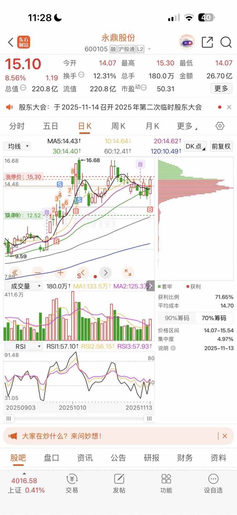 $永鼎股份(SH600105)$ 永鼎卖飞2个板,主力拉二波,补偿我