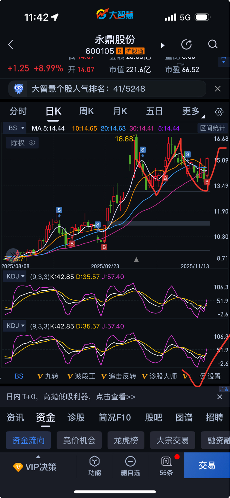 $永鼎股份(SH600105)$ K D j金叉向上,估计又开始一波上升打前面高点创新高后面下周