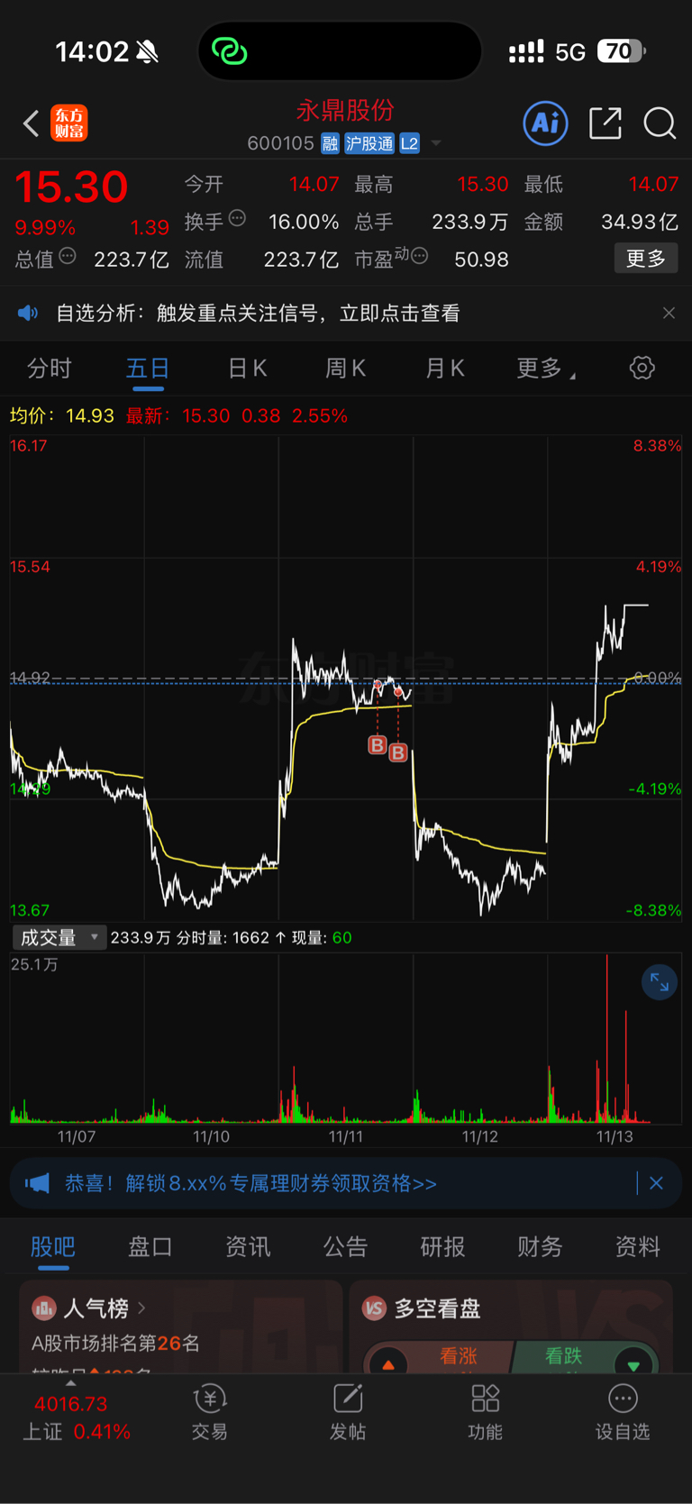 $永鼎股份(SH600105)$ 这种过山车谁懂买入第二天直接闷杀 再过一天直接涨停