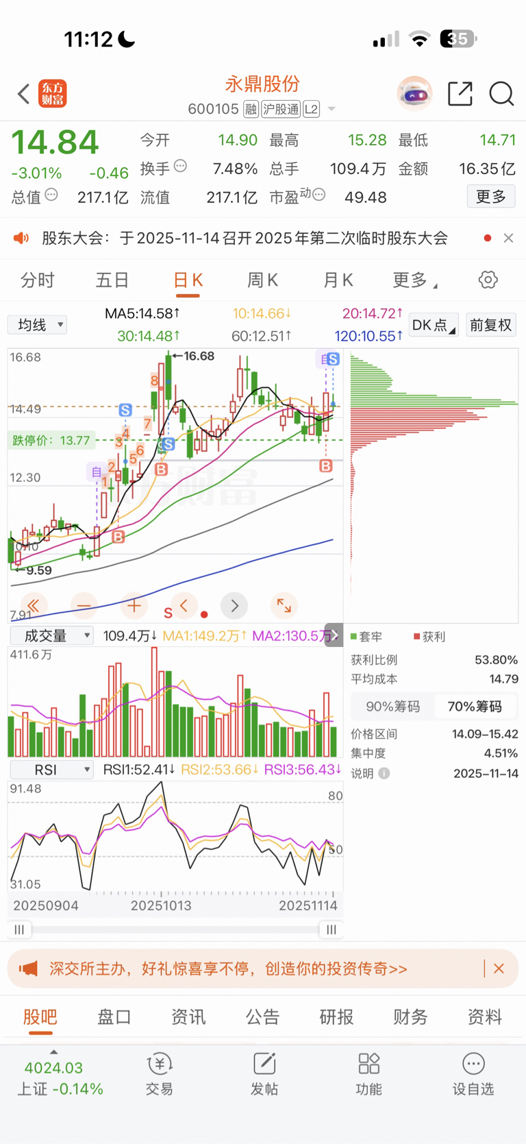 $永鼎股份(SH600105)$ 走了,赚不到钱这股,我一进第二天就跌,就不能连涨两天吗?