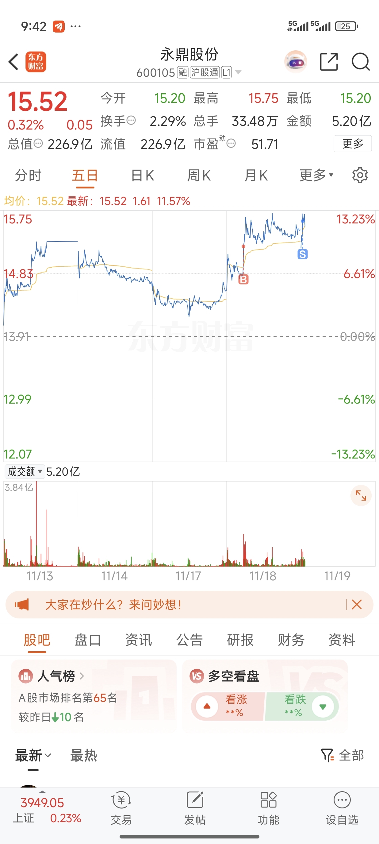 $永鼎股份(SH600105)$ 谢谢主力让我赚三个点跑了,感谢
