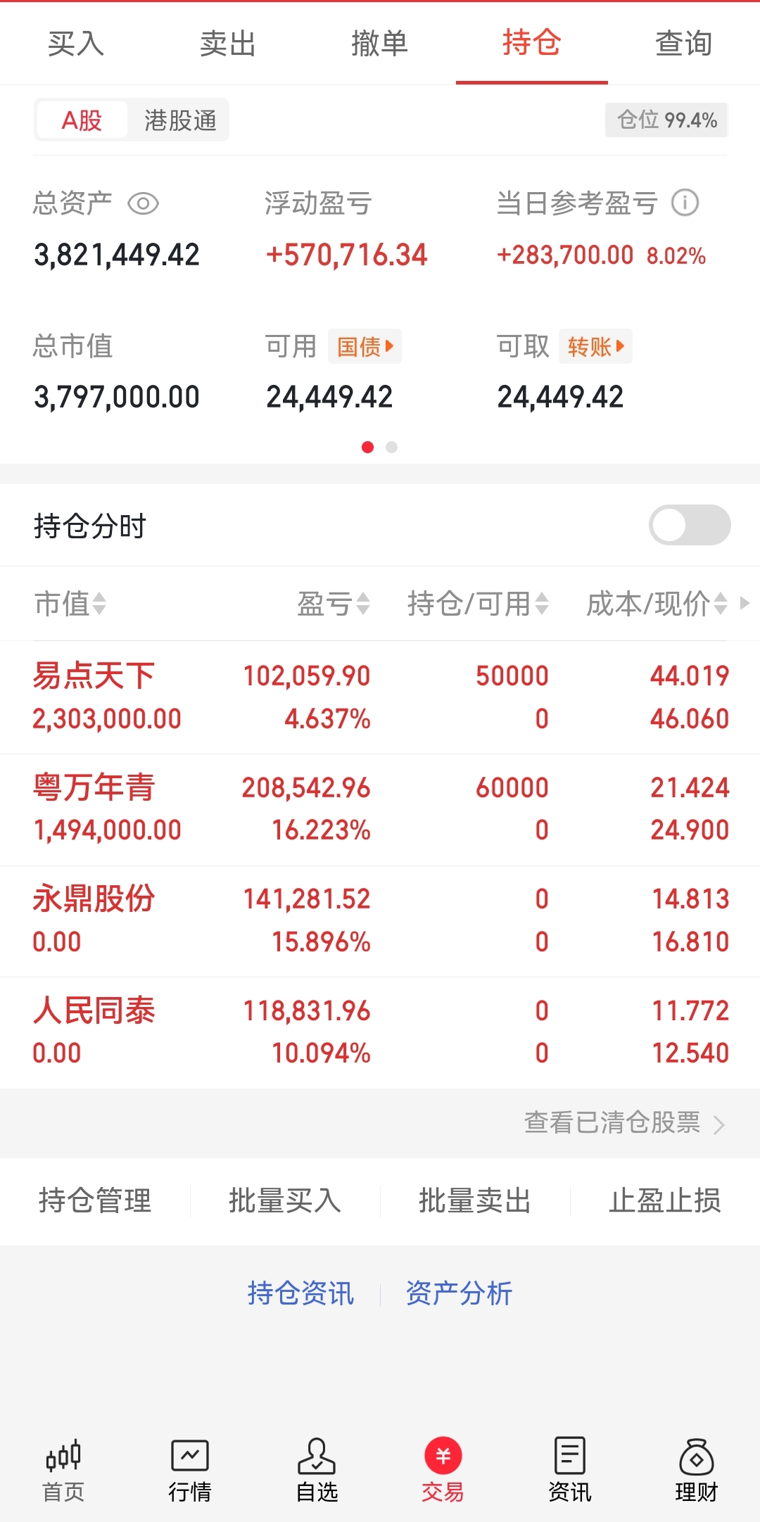 今天最新操作记录:今日卖出人民同泰今日上车今日持仓:特别声明:我开实盘的目的主要