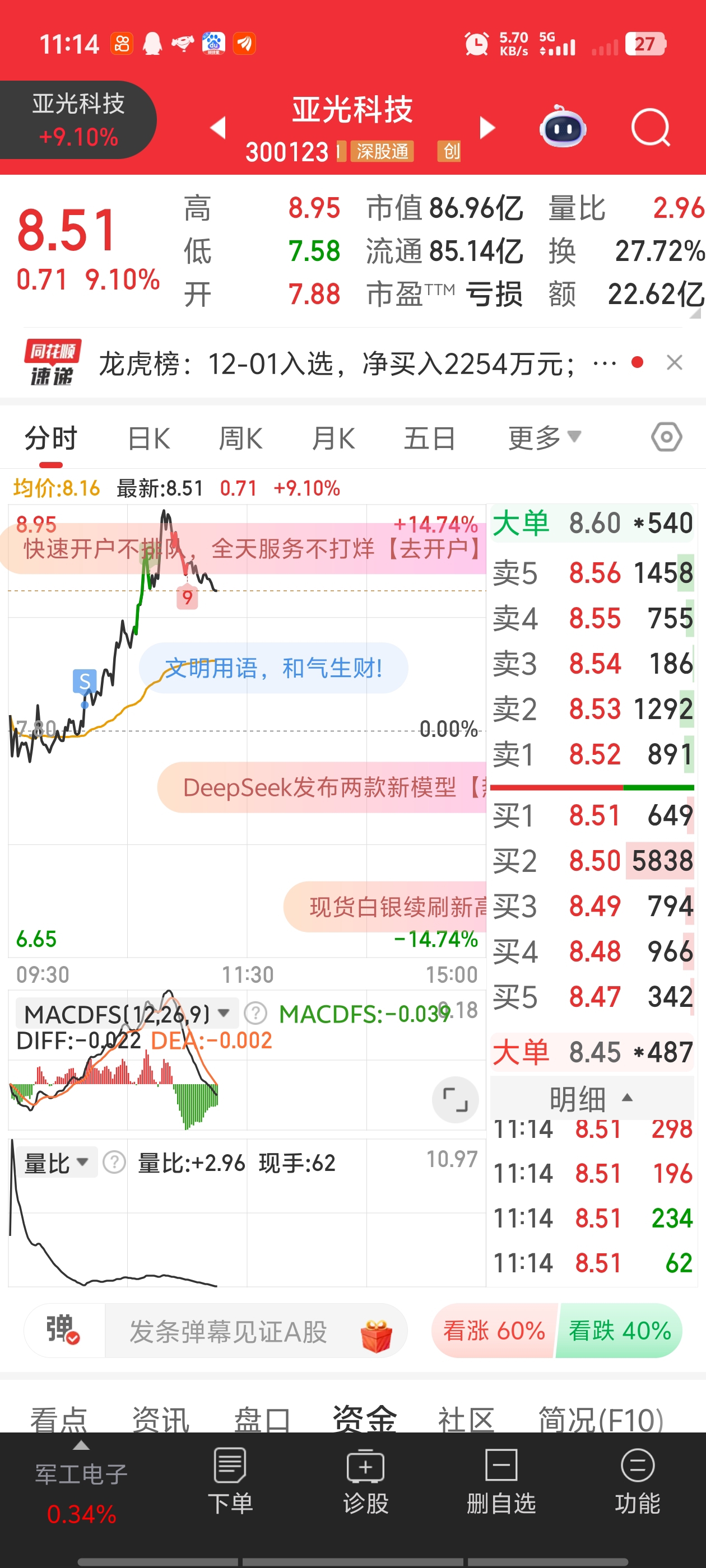 这盘子必须有量化资金进来才可以带出新高度来。好比亚光科技。所有的利好都是放p