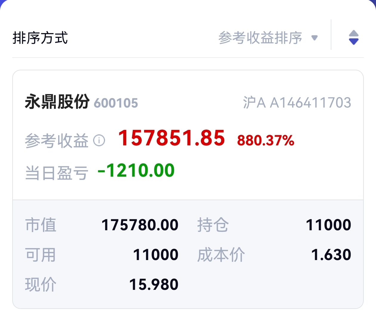 $永鼎股份(SH600105)$ 这就是今年持有永鼎的回报,任你量化折腾