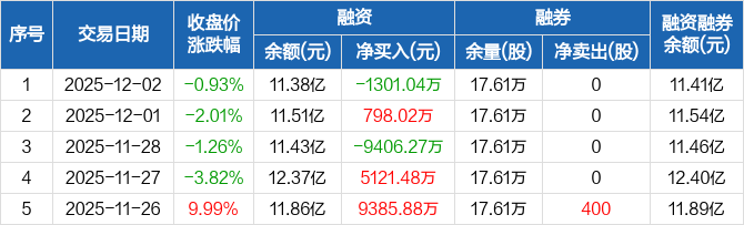 永鼎股份:融资净偿还1301.04万元,融资余额11.38亿元(12-02)