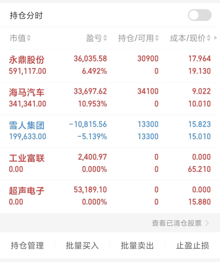 今日持仓:永鼎股份,海马汽车,雪人集团