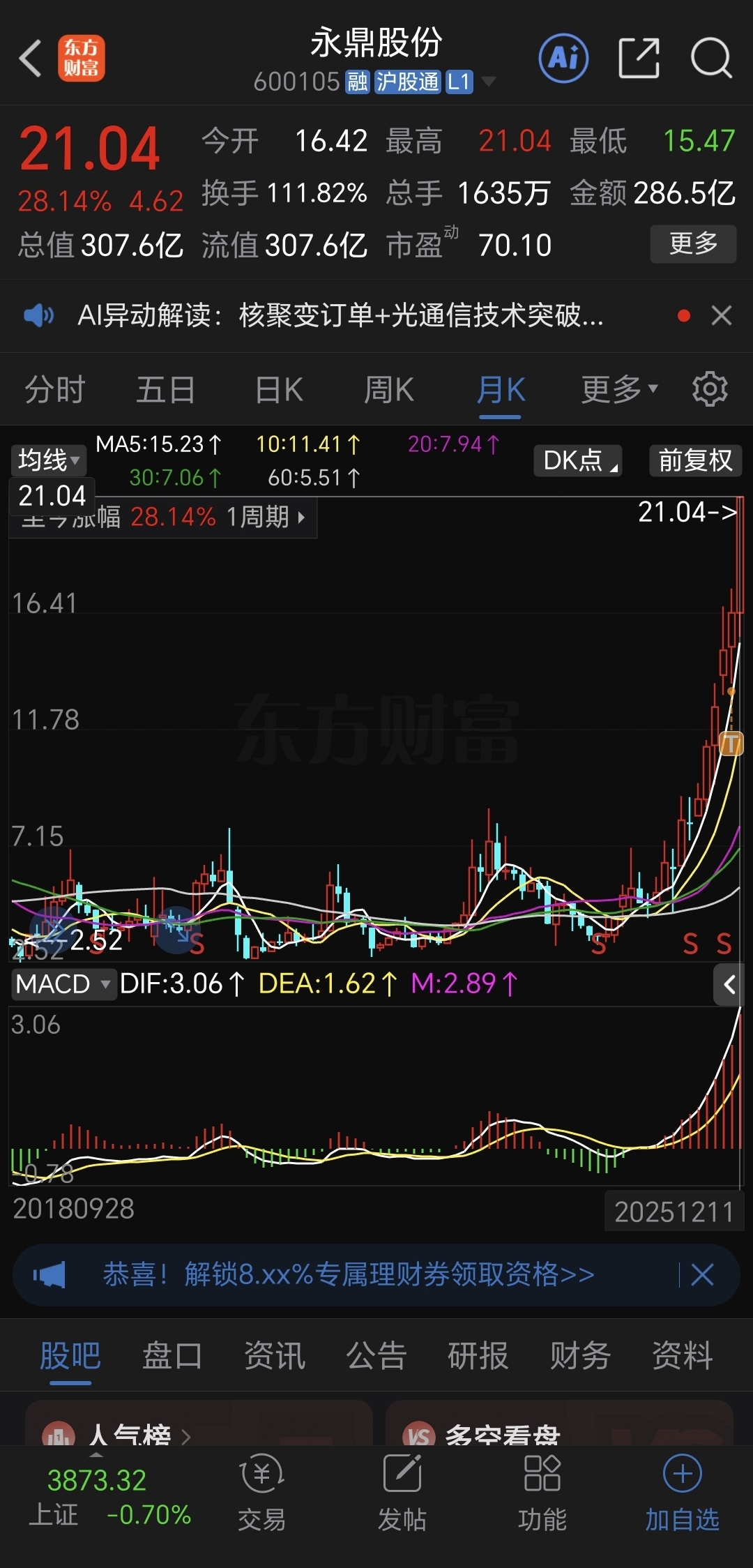 $永鼎股份(SH600105)$ 现在这个月28%涨幅,还有最少72%涨幅信不信,别看高就不敢进