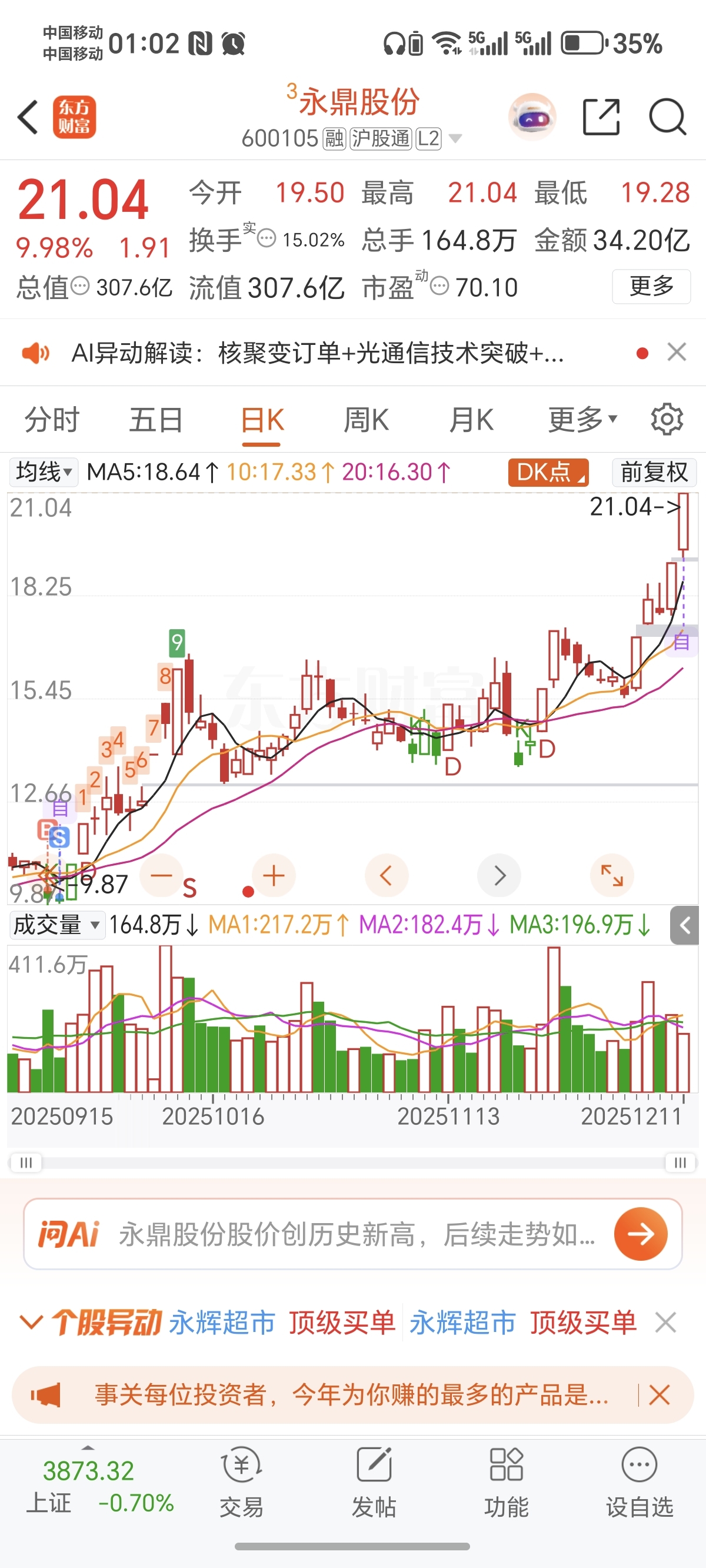 $永鼎股份(SH600105)$ 9块多时候说减持,现在都21块钱了