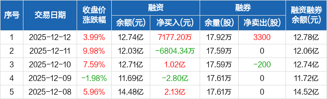 永鼎股份:融资净买入7177.2万元,融资余额12.74亿元(12-12)