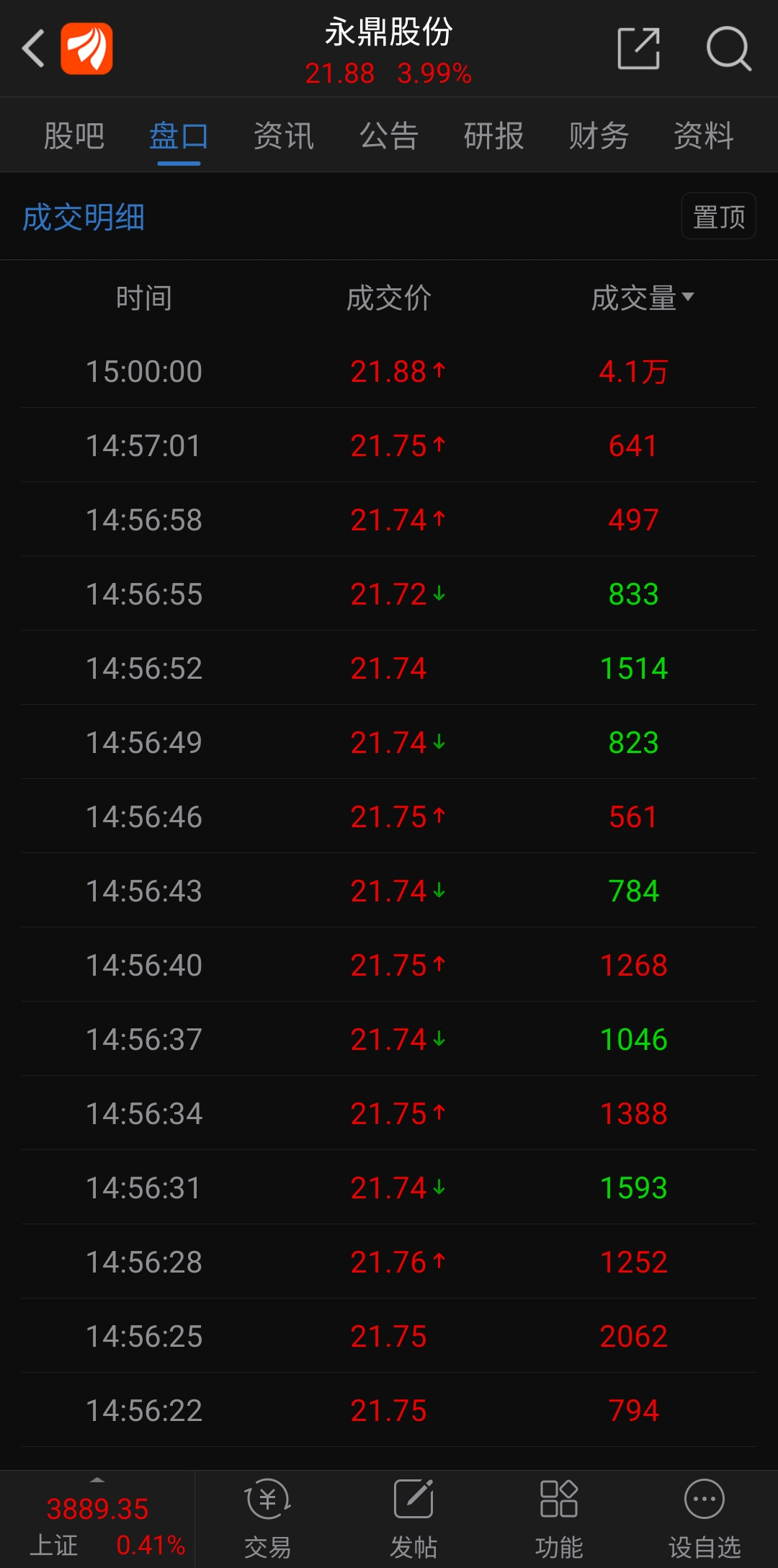 $永鼎股份(SH600105)$ 12月12日收盘集合竞价4.1万手21.88
