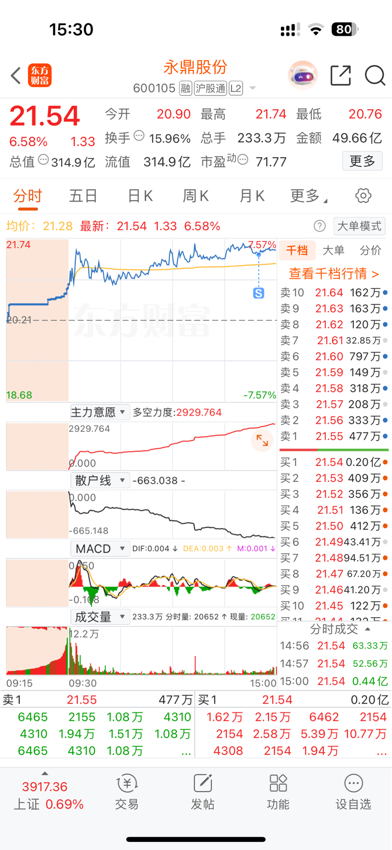 $永鼎股份(SH600105)$ 6个多亿不拉涨停,说明什么?分批较大,不敢拉怕被砸,明天看能否合力,明天大概率也涨停不了,预判一手明天高开低走或低开低走