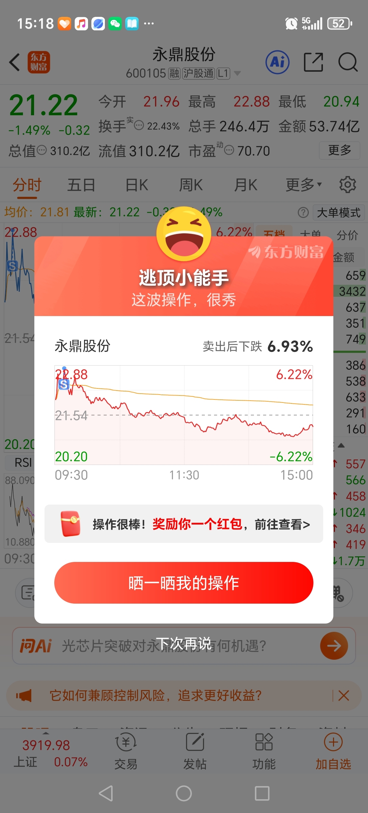 $永鼎股份(SH600105)$ 本来想做个T,看这走势又忍住了